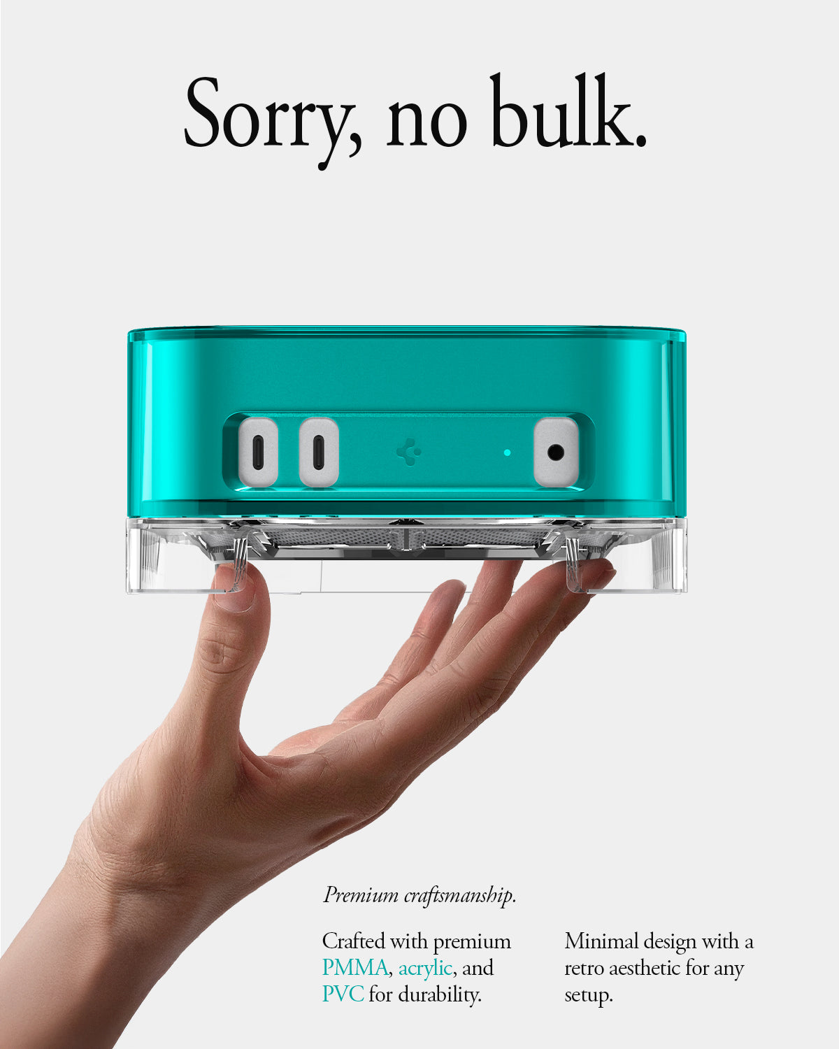 Bring a touch of nostalgia to your workspace with a transparent shell inspired by the classic iMac G3 and Power Mac G4 Cube. The C1 Mac Mini Case not only enhances your setup’s retro charm but also protects and supports your device with smart, functional design.