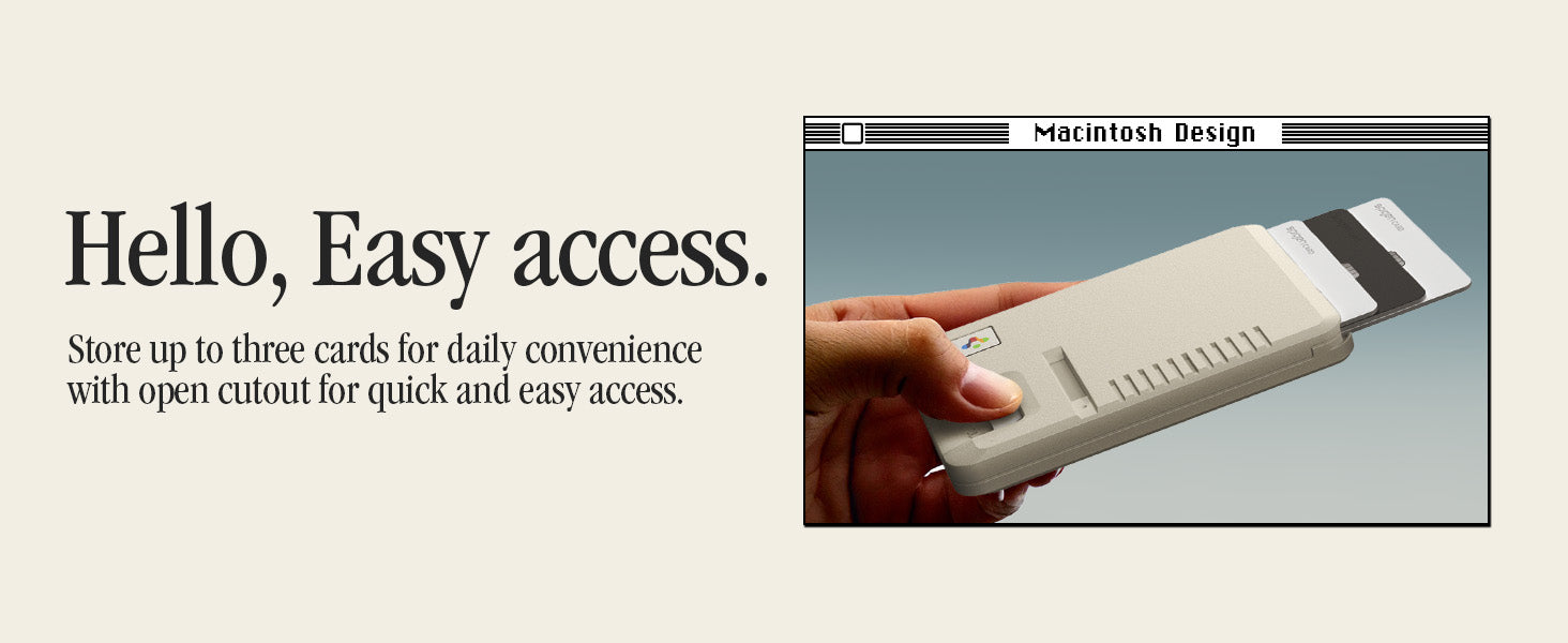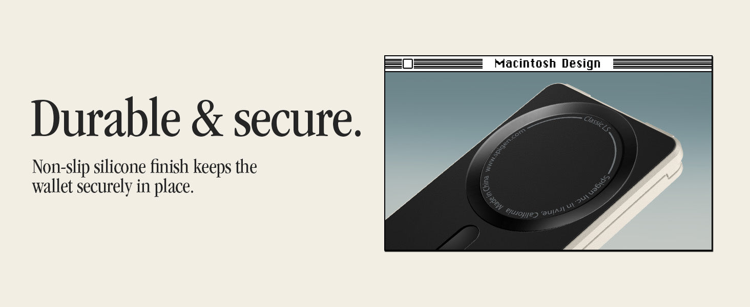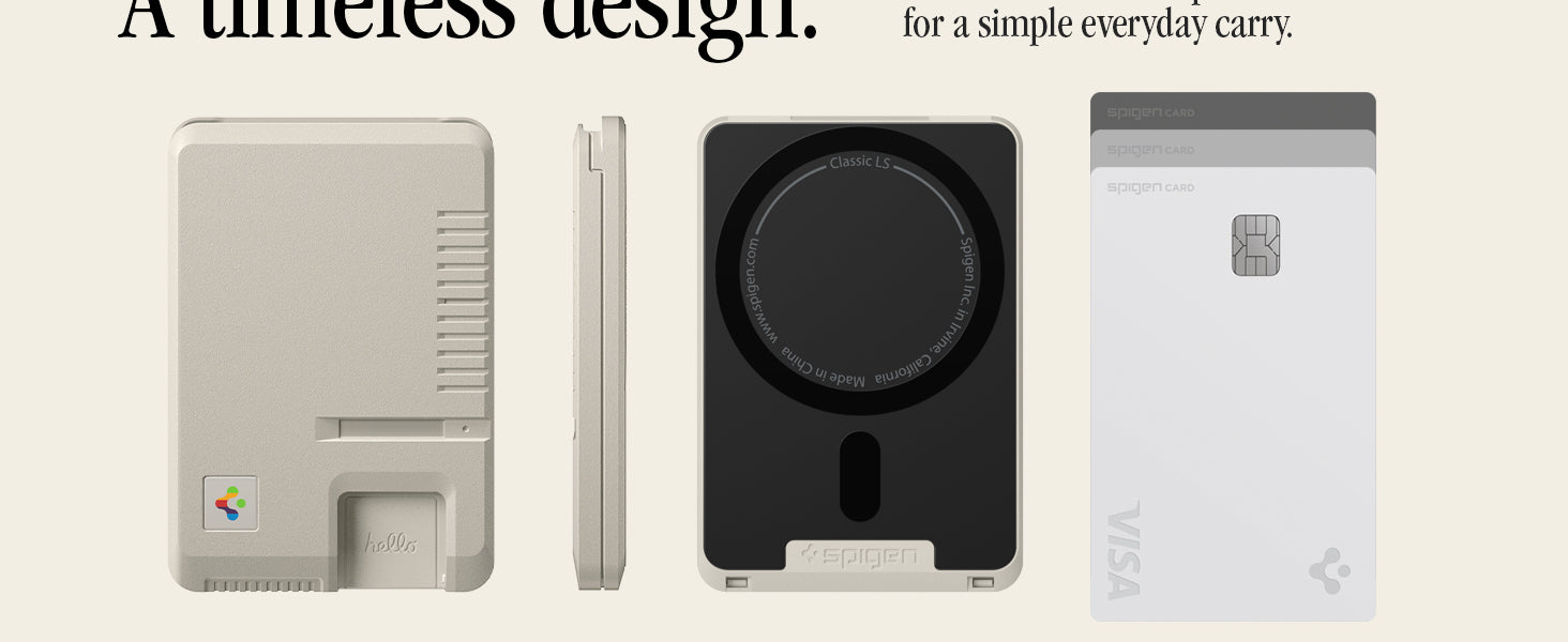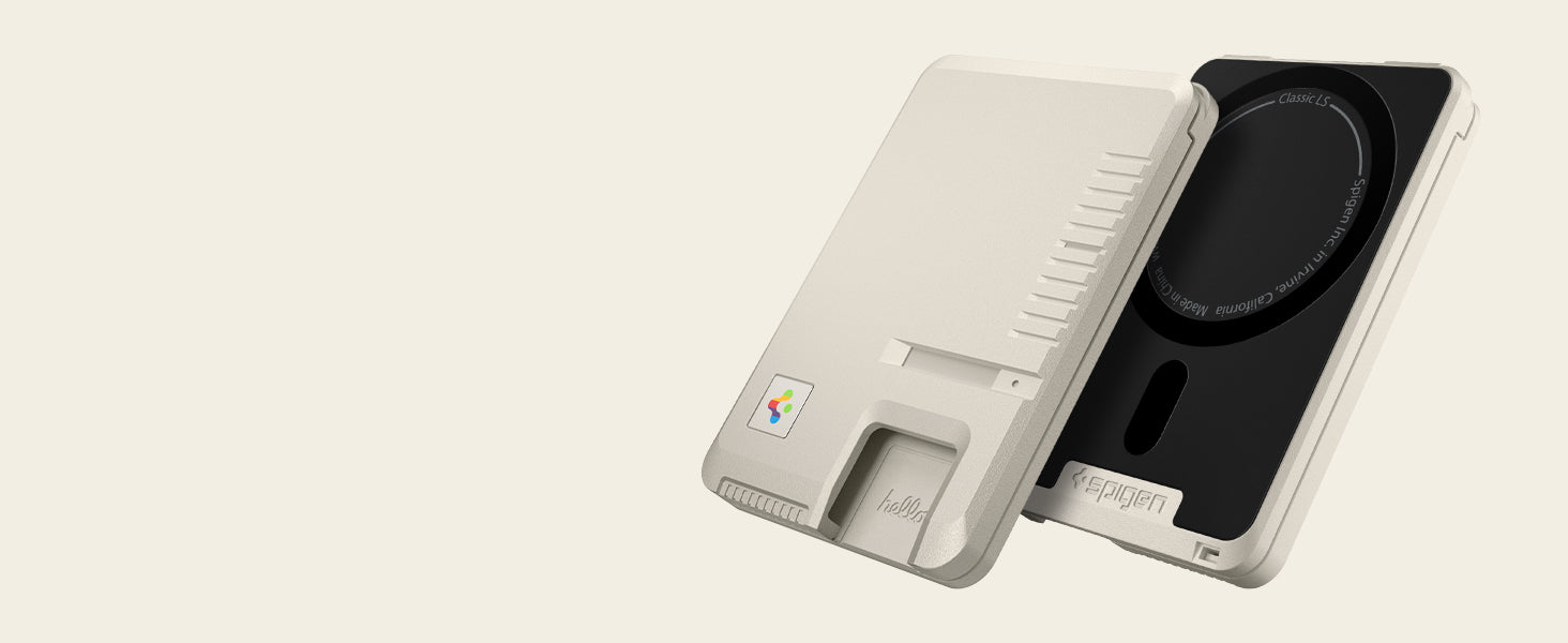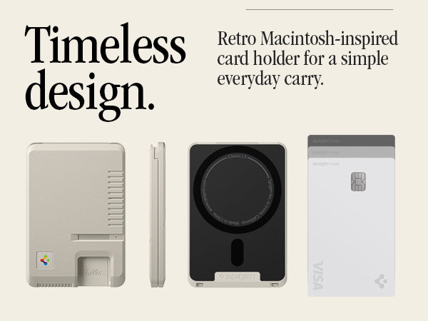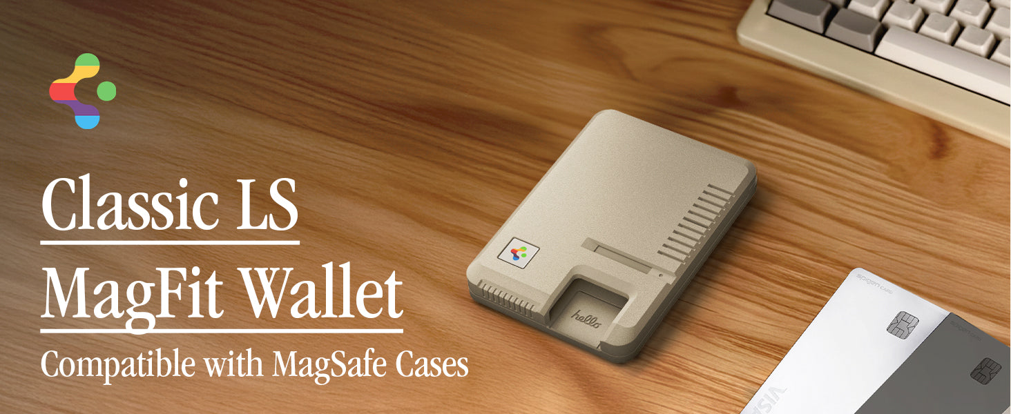 Classic LS Card Holder (Mag Fit) brings retro-tech nostalgia to your everyday carry. Inspired by the legendary Macintosh 128K, it features a floppy disk–style accent, vintage keyboard key details, and a reimagined Spigen logo for a true throwback look all while delivering modern MagSafe convenience.