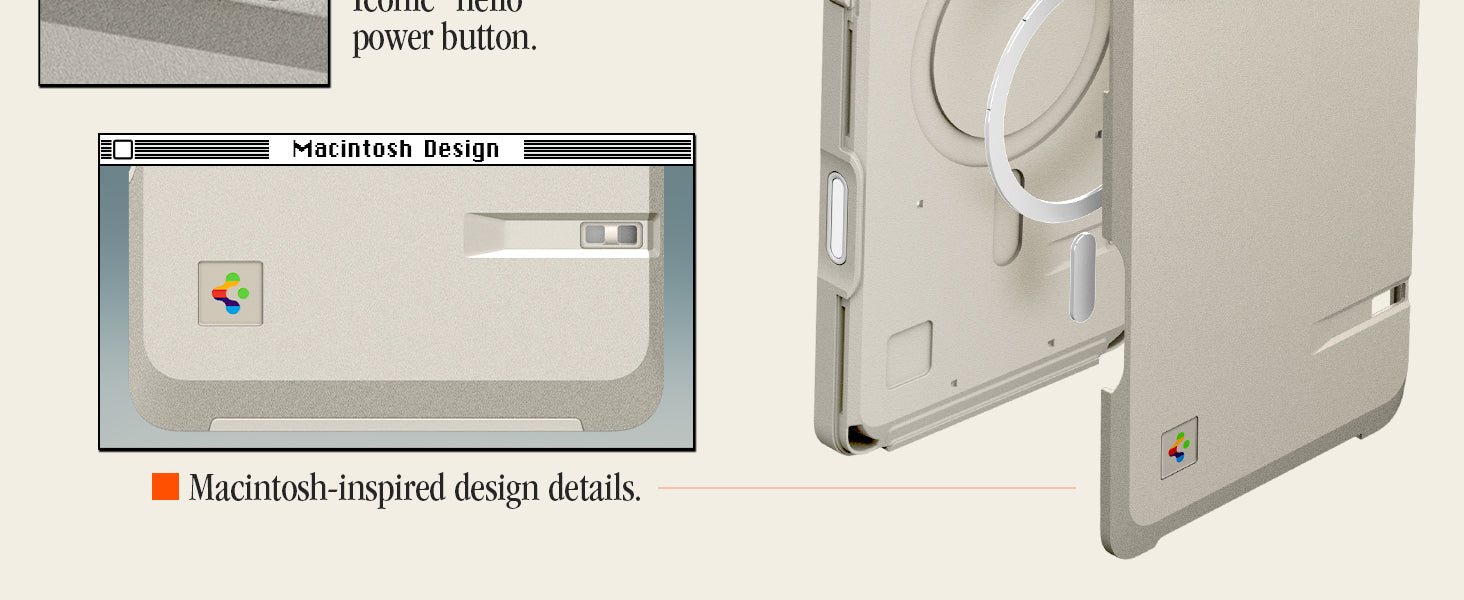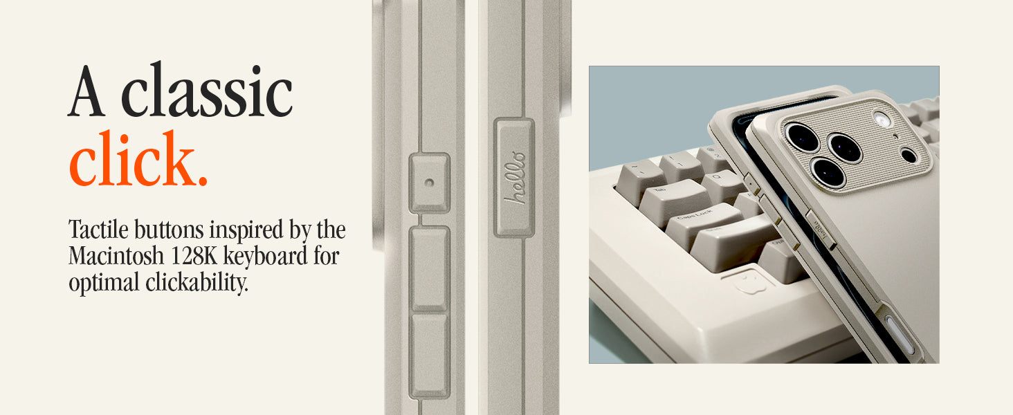 Give your phone a touch of retro charm with the Classic LS. This case pays homage to the legendary Macintosh 128K, featuring a floppy disk slot accent and a case shape inspired by the iconic computer. The reimagined Spigen logo and vintage keyboard keycaps complete the throwback look.