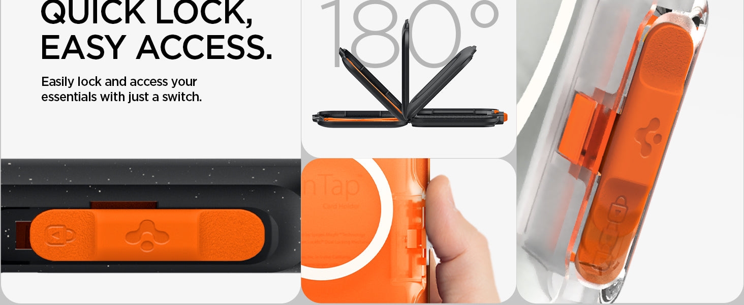 - Secures credit, debit, and ID cards via unique locking mechanism